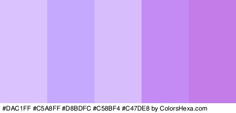 The Hex Color Codes in #DAC1FF #C5A8FF #D8BDFC #C58BF4 #C47DE8 are #DAC1FF #C5A8FF #D8BDFC #C58BF4 #C47DE8 .