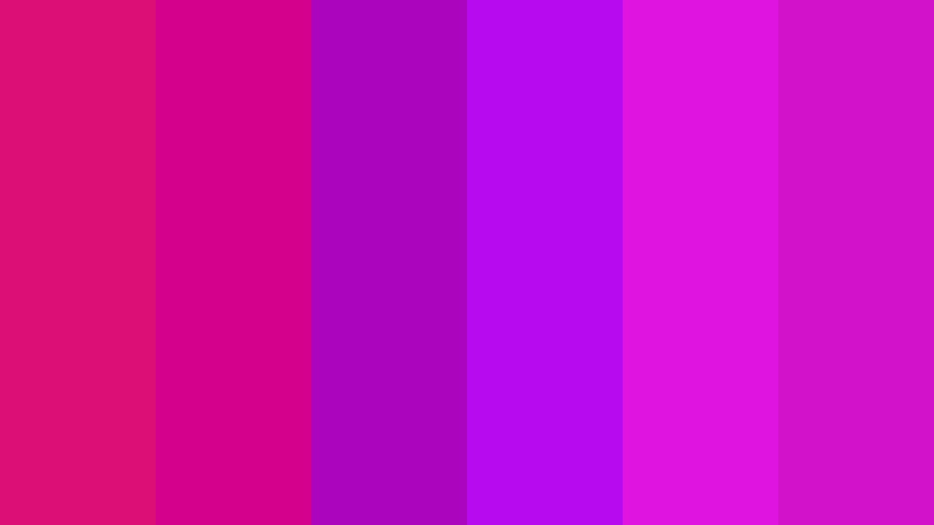 Which category does #DB0D77 #D3048E #AF05BF #B60BEA #DC14E0 #D114CD palette belong to?