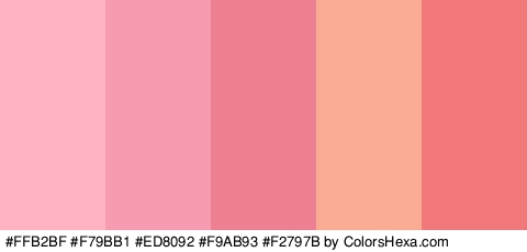 The Hex Color Codes in #FFB2BF #F79BB1 #ED8092 #F9AB93 #F2797B are #FFB2BF #F79BB1 #ED8092 #F9AB93 #F2797B .