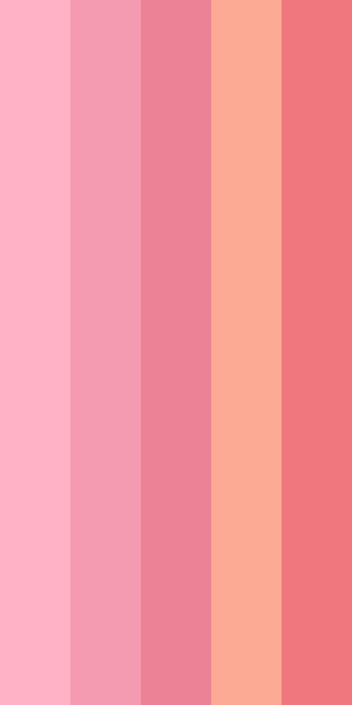 #FFB2BF #F79BB1 #ED8092 #F9AB93 #F2797B is a palette in Burgundy category and belongs to Maroon Sub Category. Download the different hex colors of #FFB2BF #F79BB1 #ED8092 #F9AB93 #F2797B. There are a total of 5 different colors which are #FFB2BF #F79BB1 #ED8092 #F9AB93 #F2797B . Find the color hex picture of #FFB2BF #F79BB1 #ED8092 #F9AB93 #F2797B.